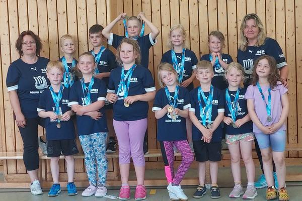 Auf Grund des vorhergesagten Regens wurde die Kreisolympiade der “Kleinen Wikinger” in die Sporthalle verlegt. Auch hier kämpften, angefeuert von den Familienangehörigen, die 5- bis 8-Jährigen um die Medaillen. Die jungen Sportler absolvierten einen Parcours und konnten ihre Kräfte im Dreierhopp und Medizinballstoßen messen. Auch die jüngsten Mitglieder des Rathenower RC Wiking freuten sich stolz über ihre Medaillen.