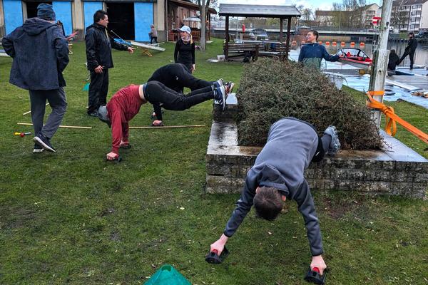 Am Mittwoch übernahm Paul im Anschluss an die Tagesbesprechung das gezielt läuferische Warm-up. Dieses wurde aufgrund der besonderen Bedingungen direkt ausgeweitet. Dichter Nebel auf der Havel mit einer Sichtweite von teils unter einem Meter machte eine Wassereinheit zunächst unmöglich, sodass nach der Erwärmung eine verlängerte Laufeinheit über unseren Weinberg und die BUGA-Brücke durch die Gruppe absolviert wurde. Um das Tagesprogramm nicht unweit in die Länge zu ziehen, fand eine etwas verkürzte Wassereinheit statt. In der Mittagspause stärkten sich alle mit Buchstabensuppe. An dieser Stelle sei besonders hervorgehoben, dass die Verpflegung an jedem Tag frisch durch engagierte Helfer zubereitet wurde. Es folgte ein vielseitiger Theorieblock mit Inhalten zum Verhalten beim Wettkampf, den für Sportler wichtigsten Aspekten der Ruder-Wettkampf-Regeln sowie den zentralen Aspekten der Vereins- und Verbandsstrukturen. Letztere sind insbesondere für das Ablegen des Deutschen Ruderabzeichens wichtig. Aber auch Themen wie Fairness und der Umgang mit Diskriminierung im Sport wurden an diesem Tag aufgegriffen und vielseitig diskutiert. Nachfolgend stand mit dem Ablegen der Technikstufen 1 und 2 ein besonderer Programmpunkt an, der sowohl einen schriftlichen Theorieteil als auch einen Praxisteil im Renneiner umfasste. Letzterer wurde durch den Einsatz als Kameraboot zu einer echten Attraktion für die Jugendlichen. Diverse Impressionen dazu finden sich auf unserem Instagram Account (@rathenowerruderclubwiking). Bei einem sonnigen Tagesabschluss klang der Wochenteiler schließlich entspannt aus. Herzlichen Glückwunsch an die Absolventen der Technikstufe 1: Hugo und Mila, sowie an die Absolventen der Technikstufe 2: Jonas, Elina, Hannah, Maya und Emil!
